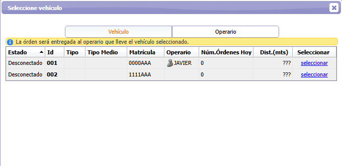 Si deseas asignar a un vehículo, usa el ícono de vehículo.